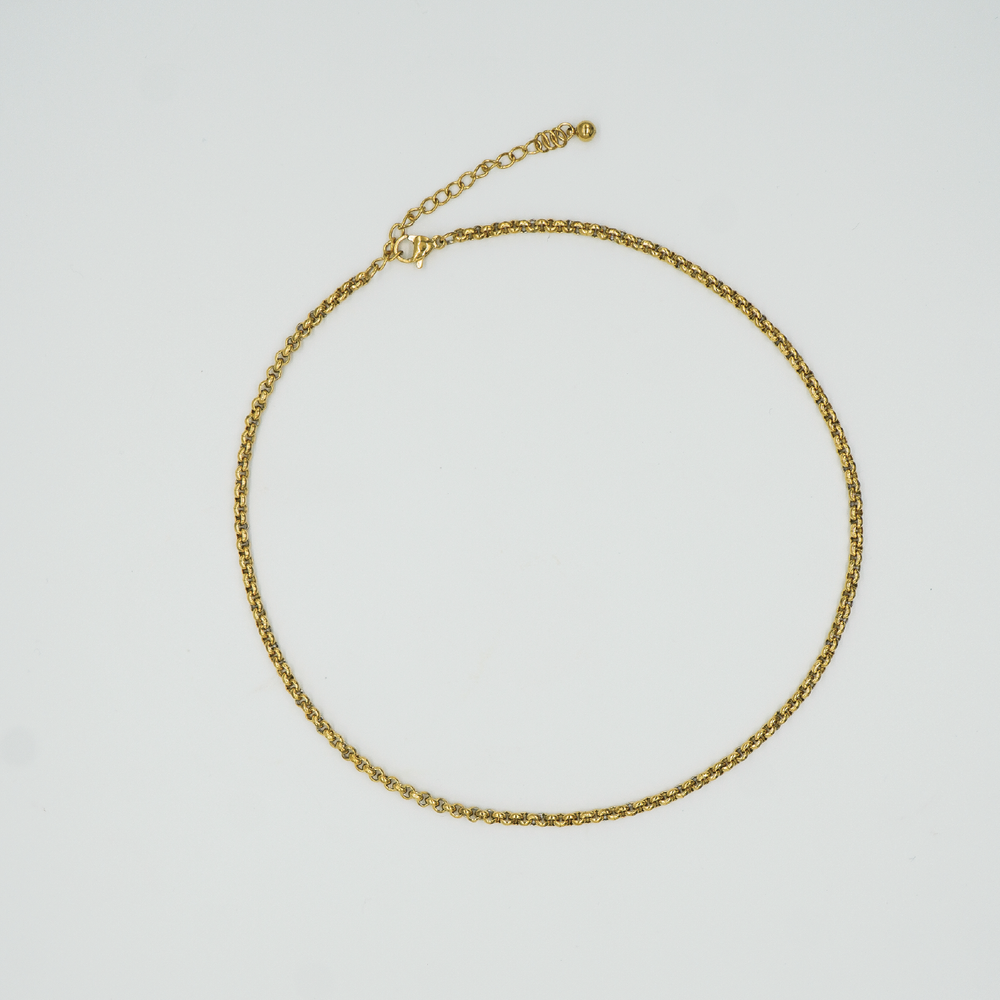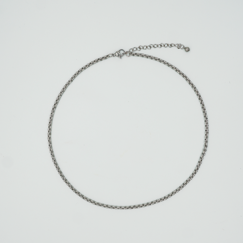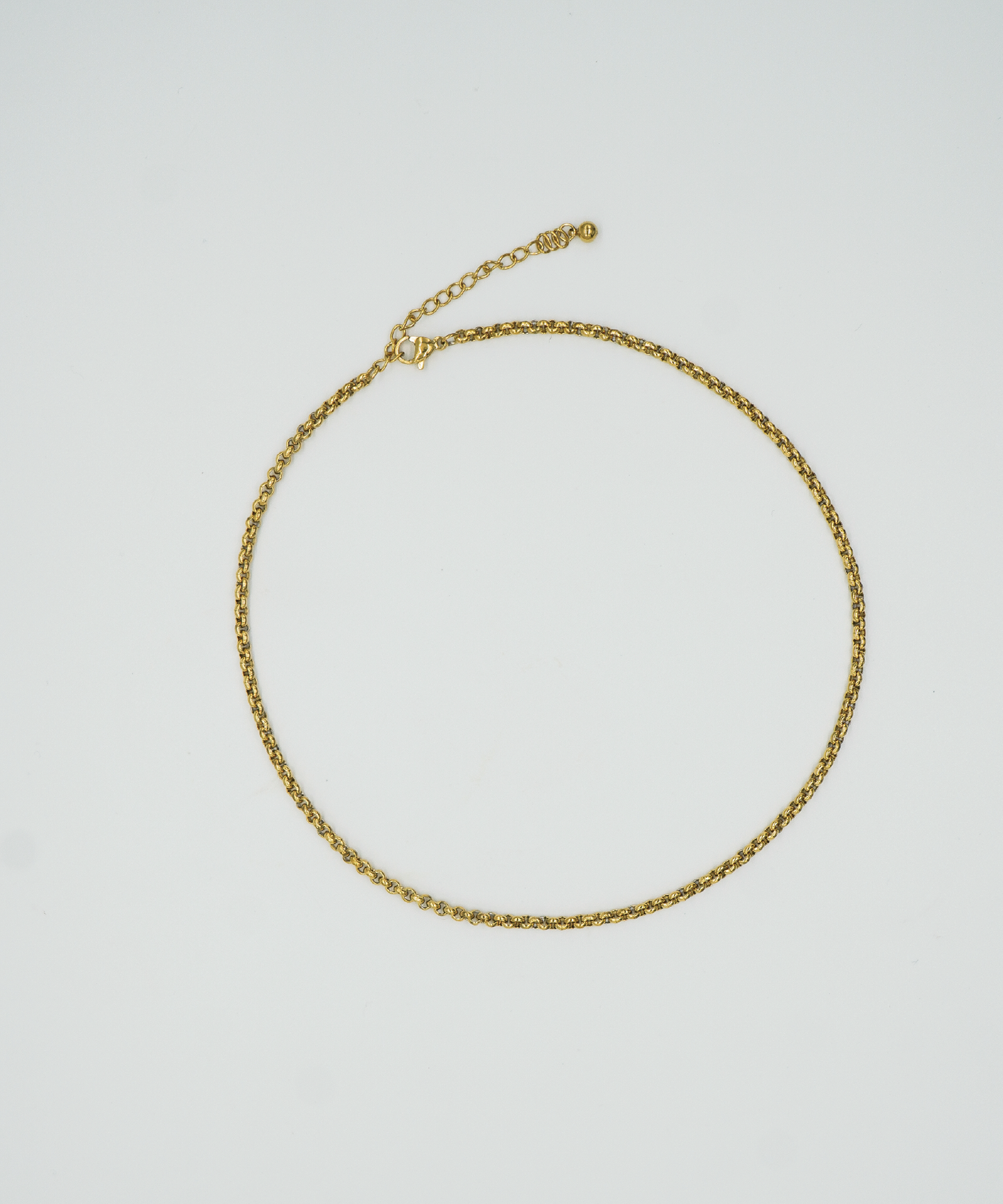 控えめな輝きが首もとに寄り添う、ミニマルなチェーンネックレス。