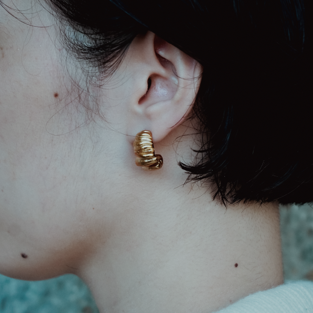 柔らかな波のリズムを思わせる、立体的なリブデザインが特徴のミニフープピアス。